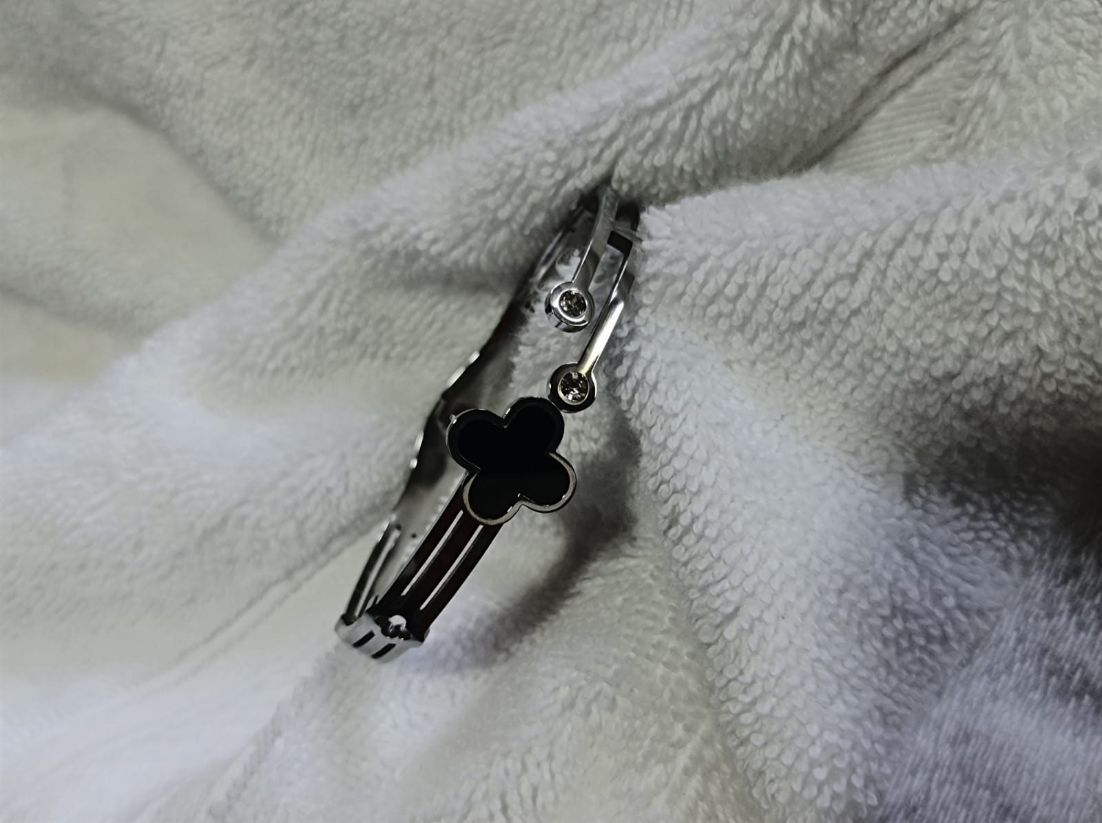 Trebol de la buena suerte color plata, elaborada en acero inoxidable , pulsera ajustable