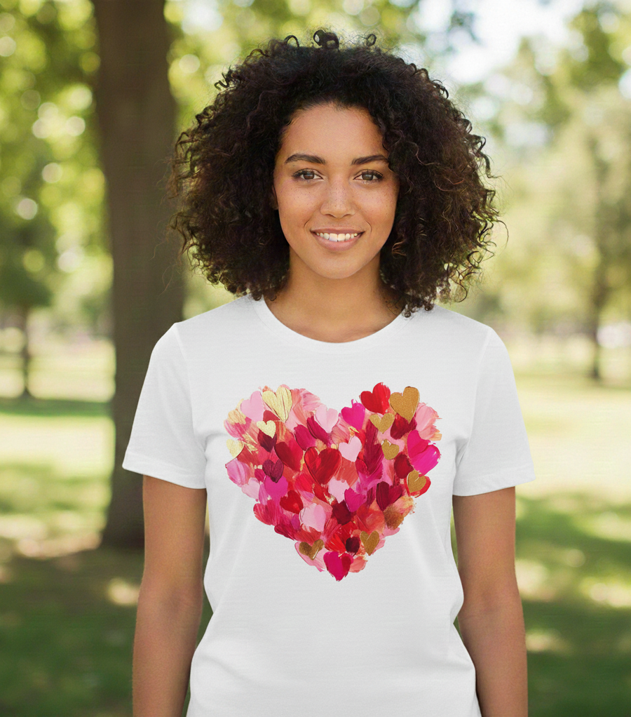 Camiseta corazon rojo dorado en algodón 100%
