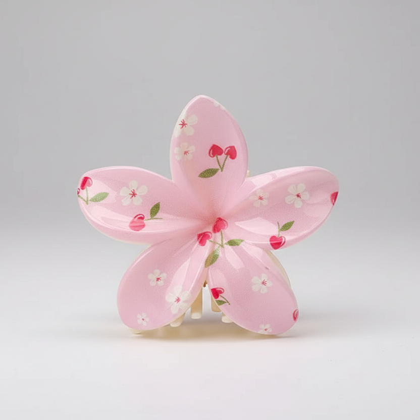 Gancho de cabello tropical cerezas rosa