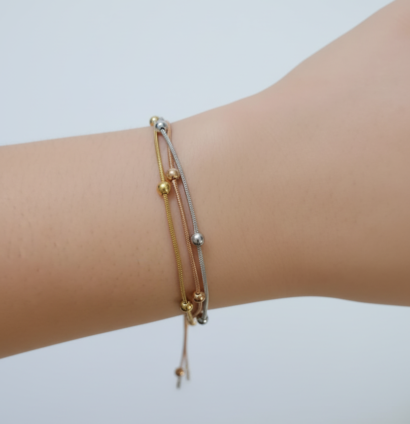Pulsera tres tonos plateado, rosa oro y dorado en acero inoxidable elegante